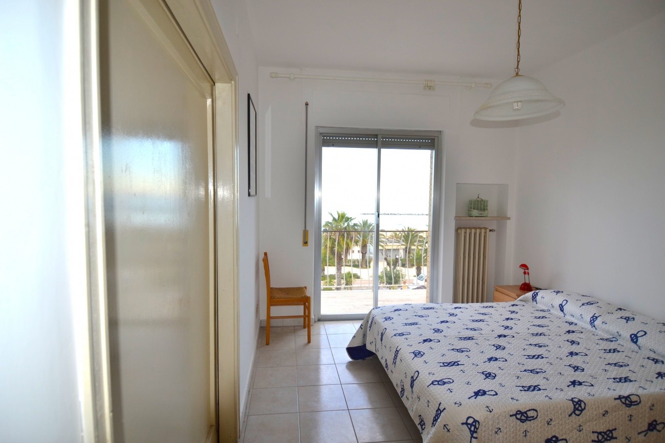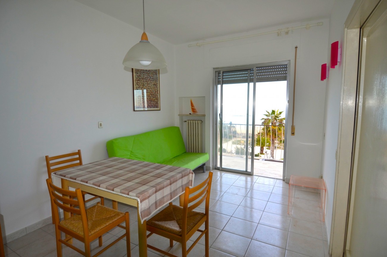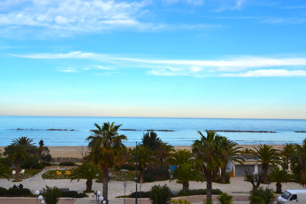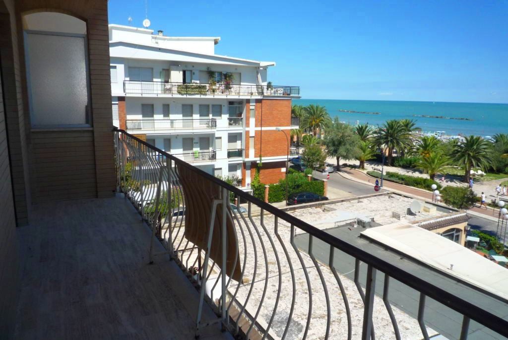 Appartamento luminoso sito al piano terzo di una palazzina con ascensore posta in primissima fila sul lungomare di San Benedetto del Tronto nel tratto recentemente rinnovato con aree verdi, pista ciclabile e passeggiata serale sull’isola pedonale. Nelle vicinanze tutti i servizi della zona turistica (ristoranti di pesce, locali di svago, alimentari, bar, gelaterie, attrezzature sportive e cinema mutisala). Composto da: ingresso, soggiorno con divano letto ad una piazza e mezza (adatto a due bambini), cucinotto, una camera da letto matrimoniale, bagno con doccia e finestra, balcone con splendida vista frontale del mare. Fornito di un posto auto scoperto su corte accessibile con telecomado. Arredato con mobili nuovi e di buona qualità di recente acquisto.