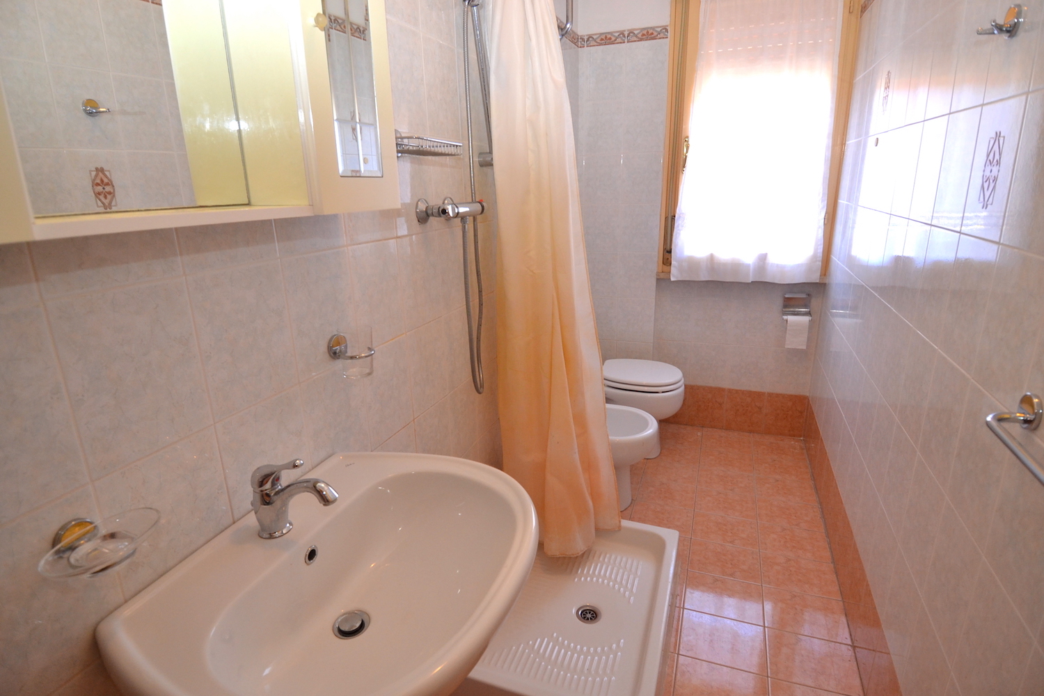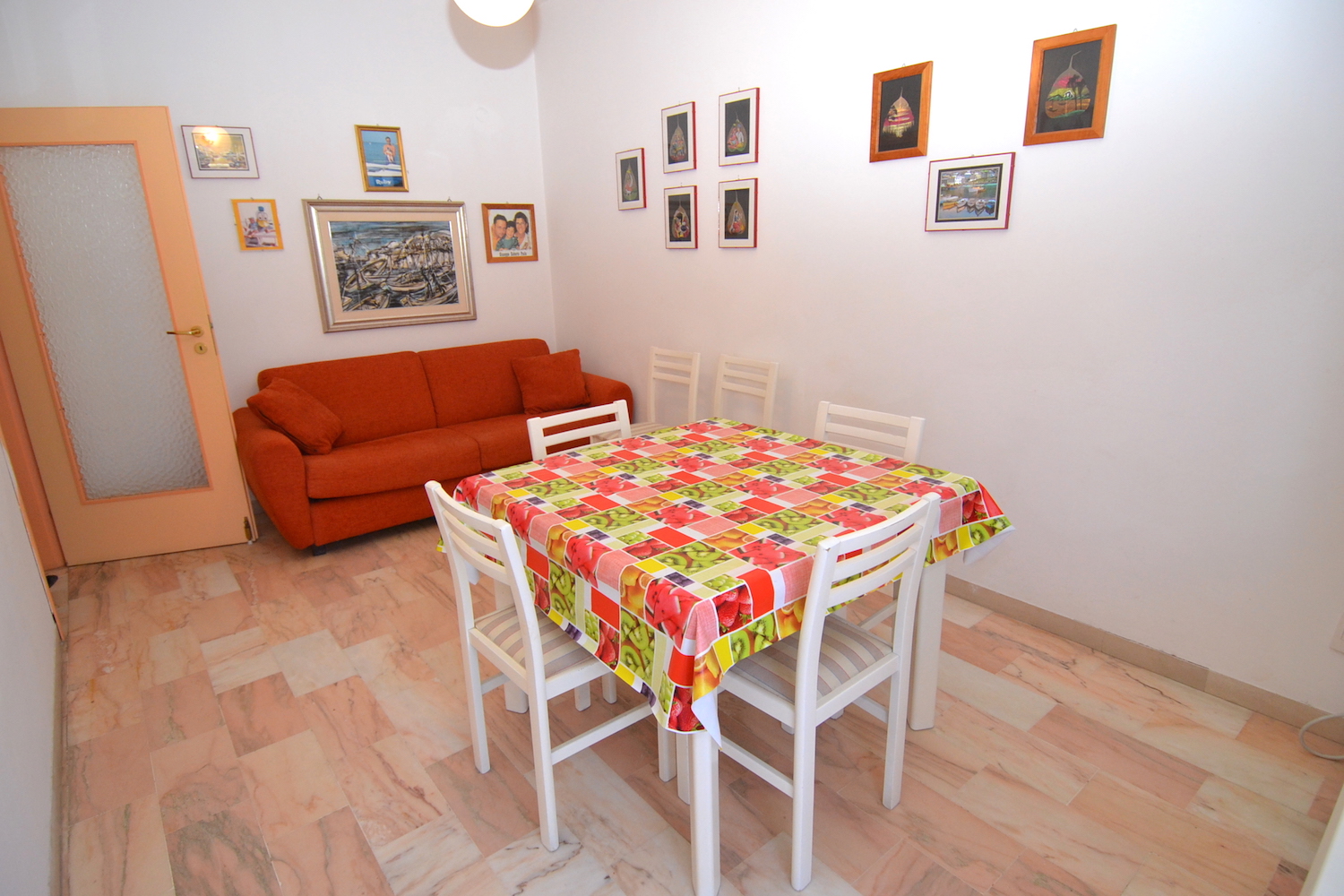 Appartamento luminoso sito al piano secondo di una palazzina senza ascensore posta lateralmente rispetto al lungomare di San Benedetto del Tronto, frazione Porto d’Ascoli, nel tratto recentemente rinnovato con aree verdi, pista ciclabile e passeggiata serale sull’isola pedonale. Nelle vicinanze tutti i servizi della zona turistica (ristoranti di pesce, locali di svago, alimentari, bar, gelaterie, attrezzature sportive e cinema multisala). Composto da: ingresso, soggiorno con divano letto matrimoniale, cucinotto, una camera da letto con un letto matrimoniale e due letti singoli (di cui uno a scomparsa), bagno con doccia e finestra, balcone e garage al piano interrato dello stesso fabbricato. Arredato con mobili nuovi e di buona qualità di recente acquisto.